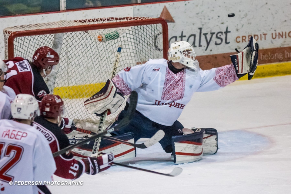 Прізвища гравців на фуфайках були нанесені кирилицею, як і назва міста – “Давфин” (зі специфікою канадської української).